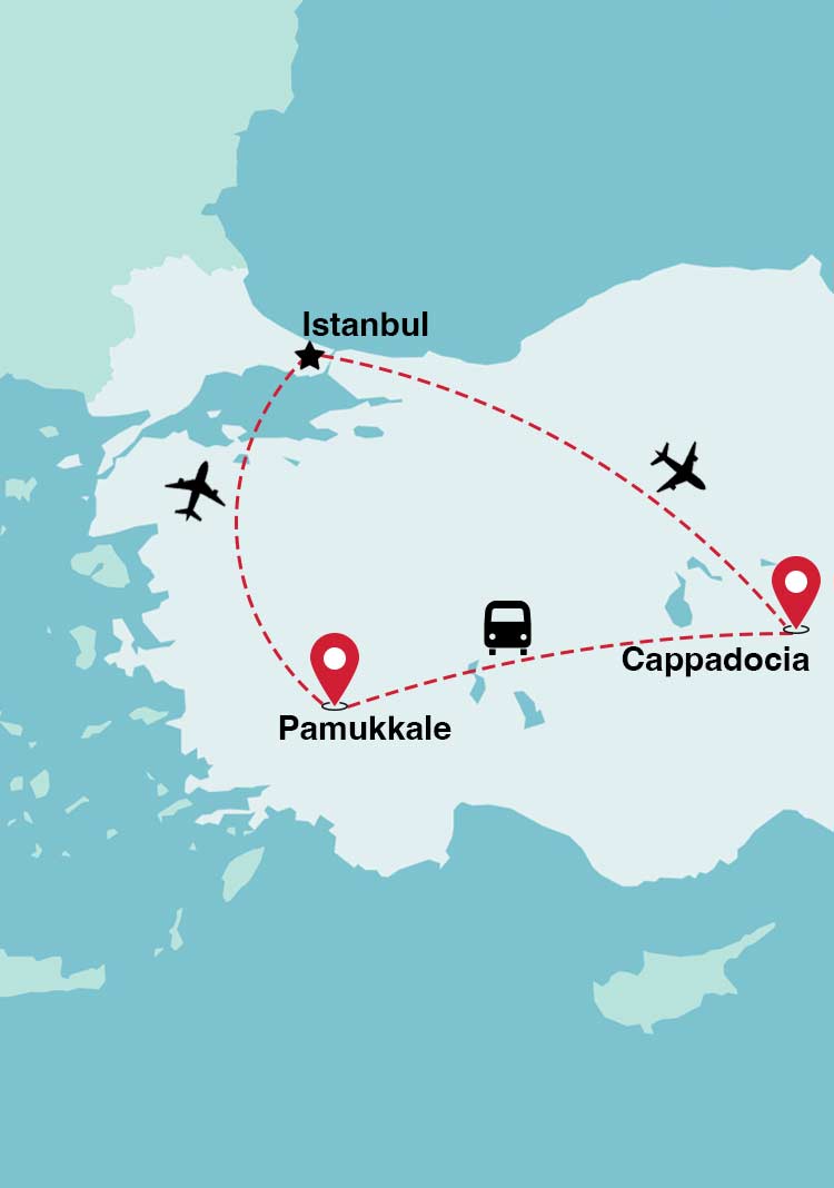 Stay overnight in Cappadocia and enjoy the second night on the way to Pamukkale, making the most of your time to see these incredible destinations.