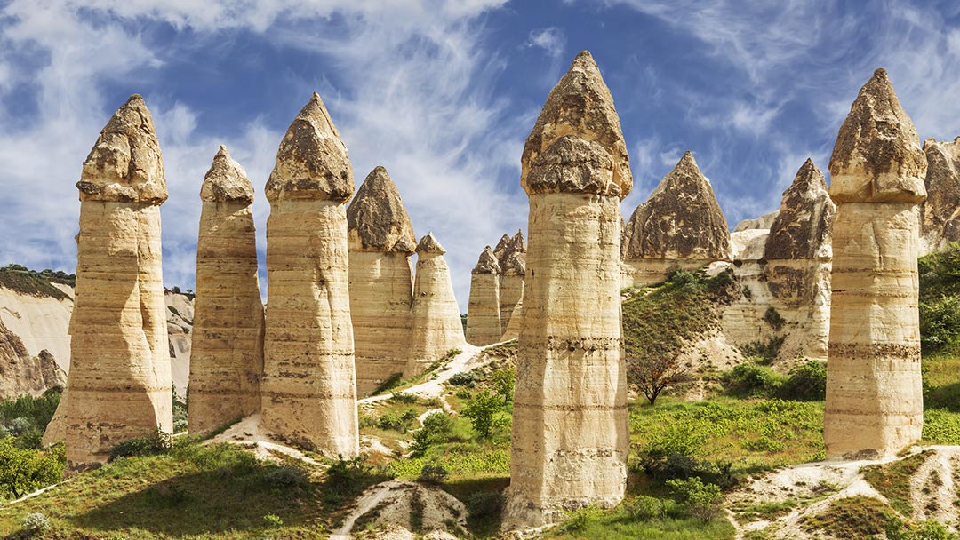 Explore fairy chimneys, underground cities, rock castles, and stunning travertine terraces.