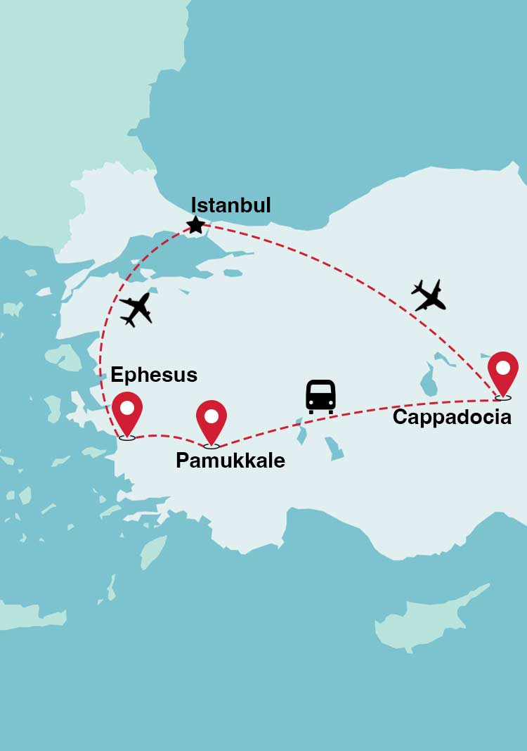 - Flights from Istanbul to Cappadocia and from Ephesus to Istanbul