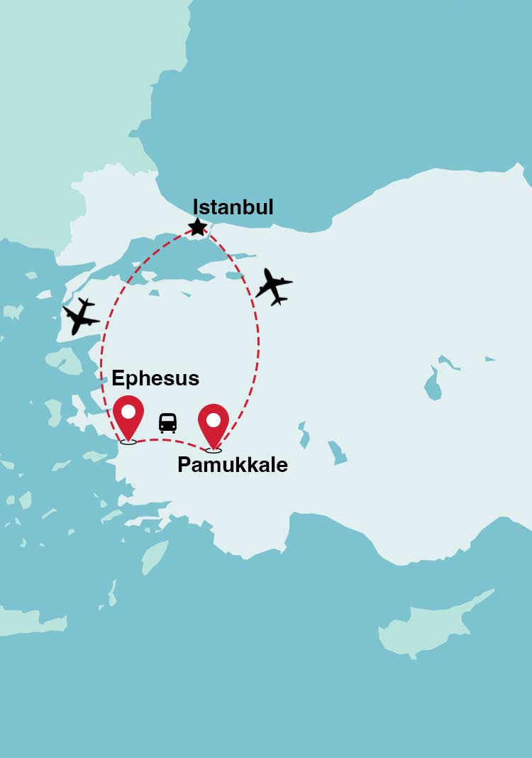- Flights from Istanbul to Ephesus and from Pamukkale to Istanbul